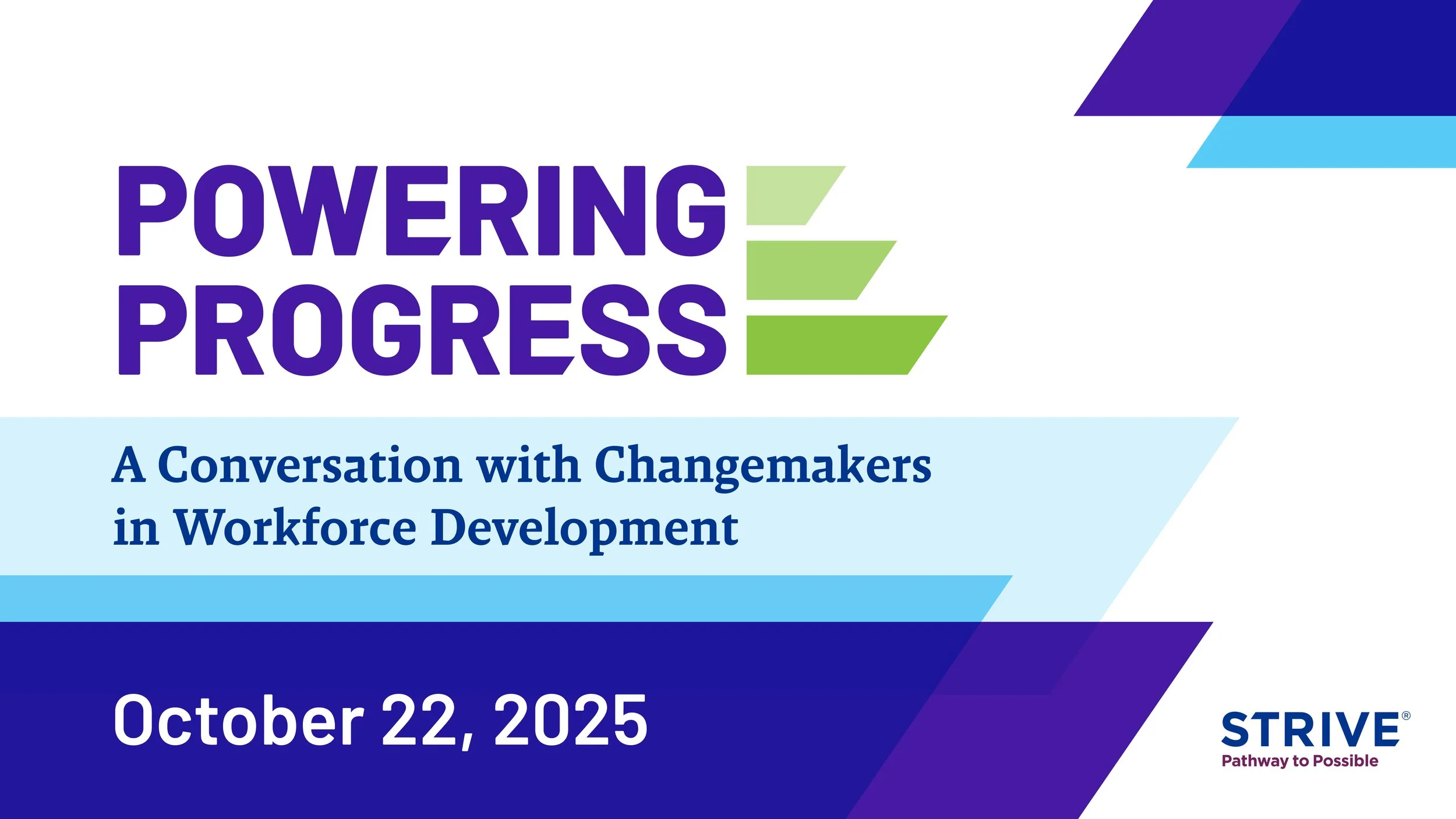 STRIVE’s new national thought leadership platform, Powering Progress, launches on Wednesday, October 22 at 12 p.m. ET with a timely conversation on advancing America’s workforce. Hear directly from four influential workforce leaders about innovative approaches to skills and career training that create opportunities for individuals and resilient businesses.